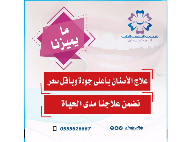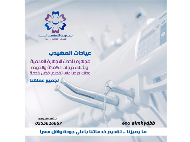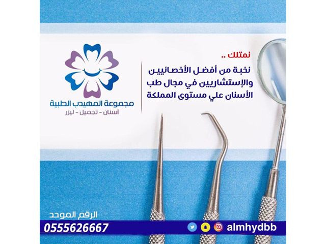 تعتبر مجموعة المهيدب لطب الاسنان من أشهر مراكز طب الأسنان داخل المملكة العربية السعودية وبها نخبة طاقم طبي متخصصين وأستشاريين والذي يختص في طب الاسنان خبرة 20 عاماً وتضمن مجموعة المهيدب لطب الاسنان من أرقئ طاقم طبي متميز ومتكامل في جميع التخصصات الطبية للأسنان والجودة والأتقان والأداء المتميز والعمل بروح الفريق