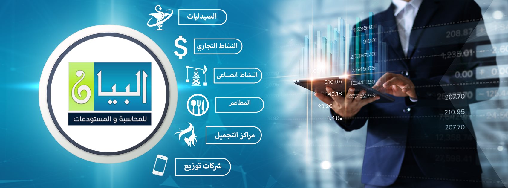 البيان هى احدى اهم الشركات الرائدة فى مجال الخدمات البرمجية والتقنية ساهمت من خلال منتجها الابرز برنامج البيان للمحاسبة والمستودعات فى توفير العديد من المزايا والاهداف للشركات