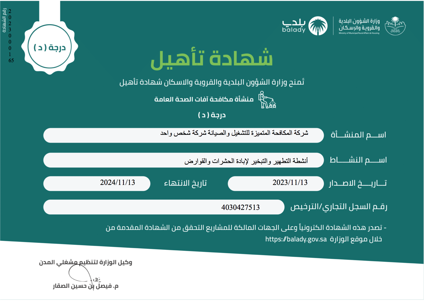 شركة المكافحة المتميزة للتشغيل والصيانة